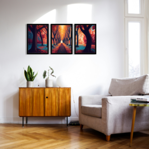 Enchanting Autumn Pathway – 3 Piece Framed Wall Art